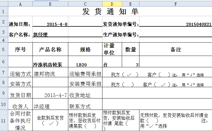 武漢洪經(jīng)理訂購(gòu)的LB冷凍機(jī)齒輪泵昨天已發(fā)貨。以下是明細(xì)發(fā)貨通知單: