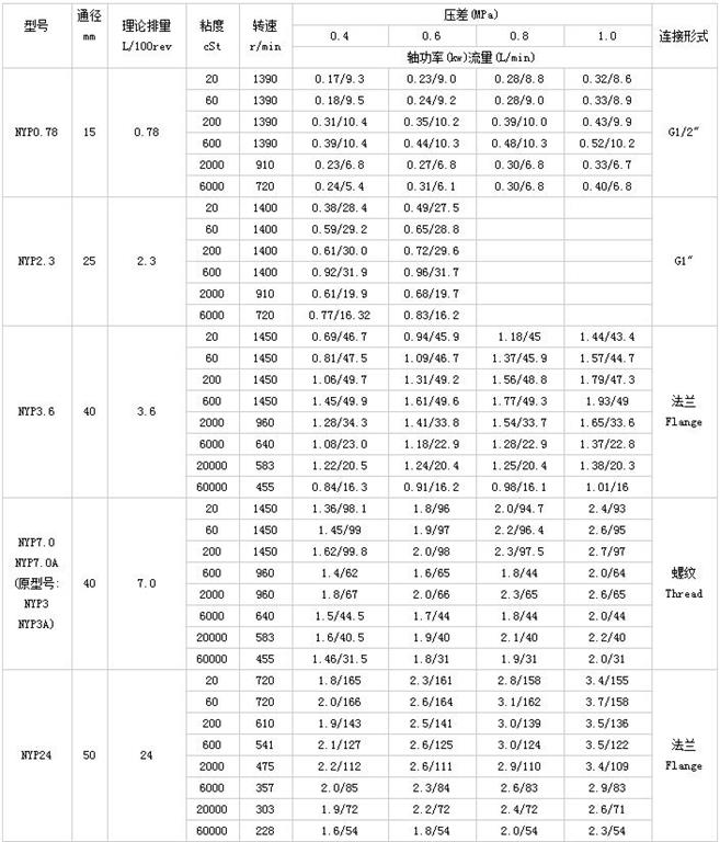 1)鑄鐵材質:適用于不含金屬顆粒物的高粘度流體介質,適用工況為石油輸送工況,涂料輸送工況,適用輸送溫度為:-10℃—200℃,適用介質粘度為:1.0cSt—300,000cSt。