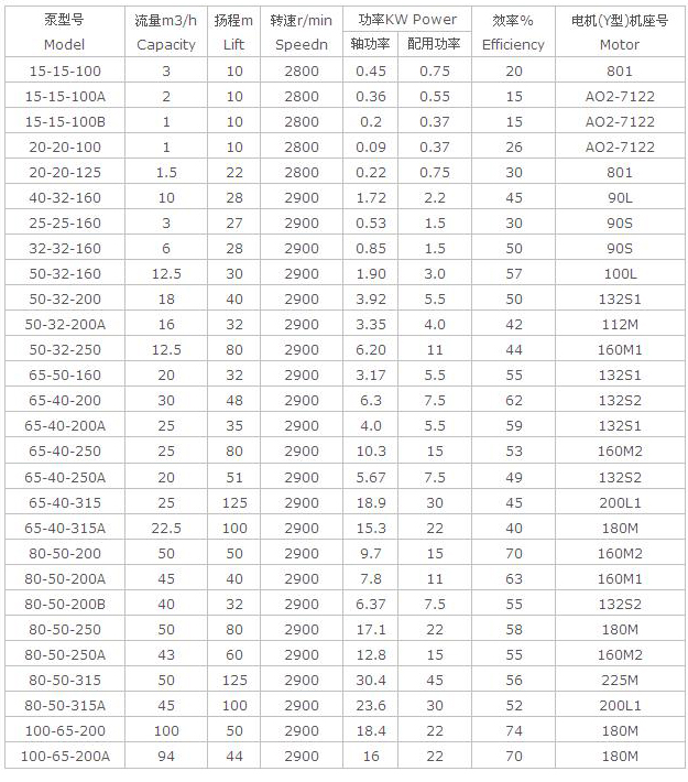 冷風(fēng)式熱油泵性能參數(shù)表: